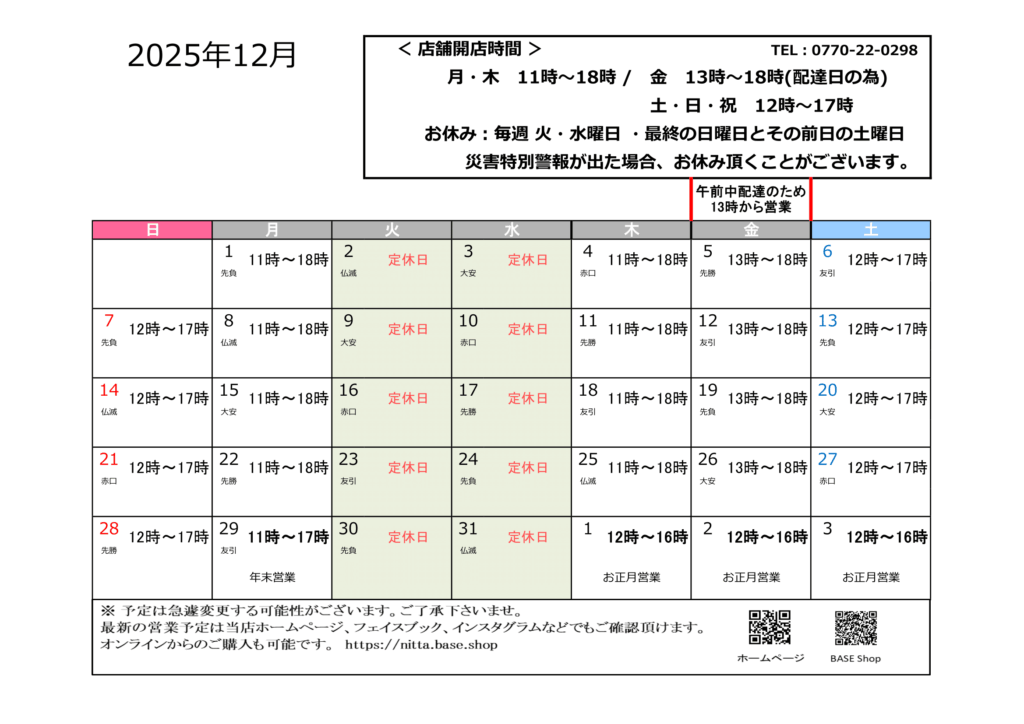 * 11月店🍁舗営業予定表です。* いつもご利用いただき誠にありがとうございます。 早くも11月。来月にはもうクリスマス。この時期になると、幼少期にアニメのドラえもんで放送されていた「時間が目に見えたらこんな感じ」という回を思い出します... -