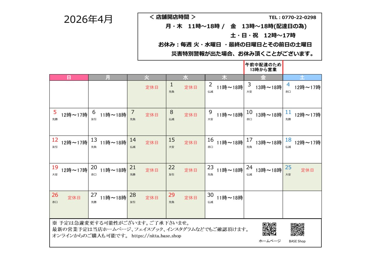 * 2026年4月🌸 営業予定表です *