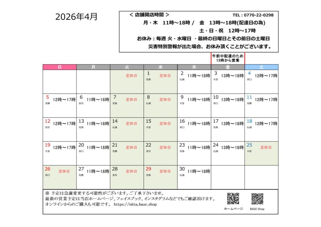 * 2026年4月🌸の店舗営業予定表です * いつもご利用いただき、誠にありがとうございます🌸 4月、出会いと別れの季節ですね。 新しい環境へと旅立つ方、大切な方をお見送りする方、 そんな節目のご挨拶に、コーヒーはいかがでしょうか&... -